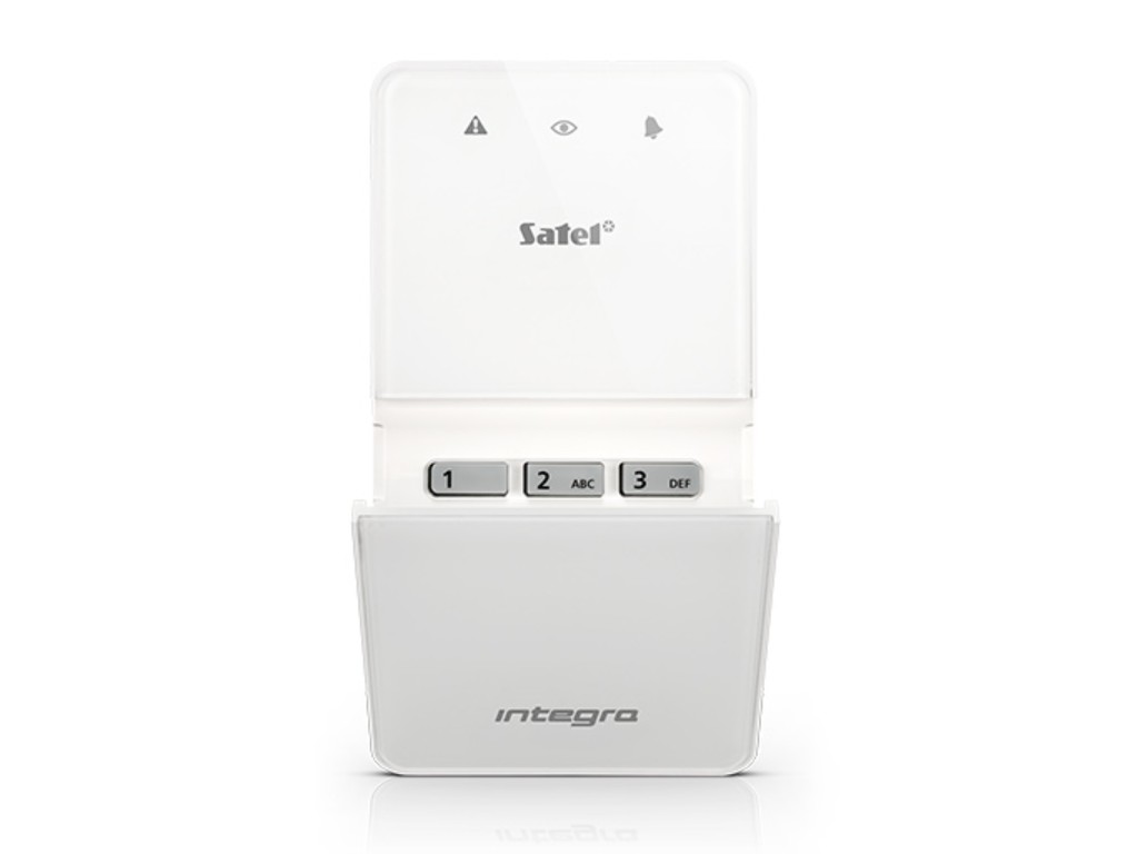 Bloková klávesnice INT-SF-SSW má estetický světlý kryt. Klávesnice je dostupná také ve tmavém provedení, označená jako INT-SF-BSB.