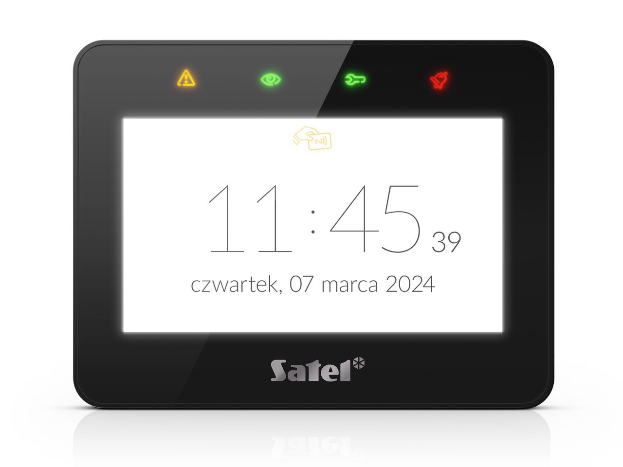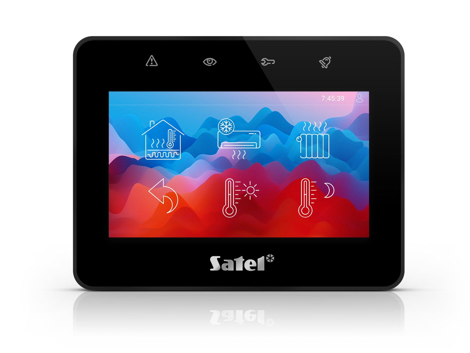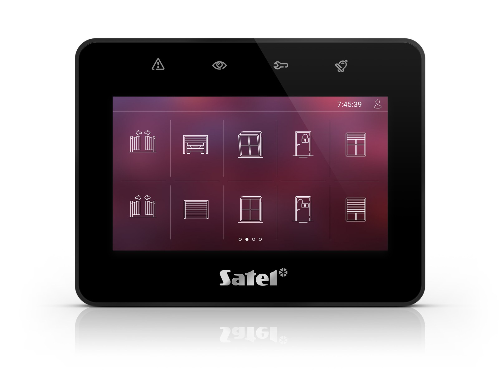 Dotyková klávesnice LCD 4,3'' s integrovanou čtečkou, pro systémy INTEGRA, VERSA, PERFECTA 64 M, čtečka MIFARE 13,56MHz (pouze INTEGRA), rozlišení 480x272, 16,7 milionu barev, přes 20 motivů, víceúrovňové konfigurovatelné grafické rozhraní, až 24 uživatelských obrazovek, podpora widgetů a MACRO funkcí, spořič obrazovky: hodiny, data, stavy (zóny, dveře, východy), teploty (pouze INTEGRA a INTEGRA Plus), funkce fotorámečku, nastavení hlasitosti (gong, vstup./odchod. zpoždění, požár, poplach, obecné), režim zobrazení LCD klávesnice, slot pro paměťovou kartu microSD/SDHC, 2 zóny (EOL,2EOL, 3EOL), stupeň 3 (EN 50131), barva černá, odběr 100-140mA, rozměry: 120 x 92 x 14 mm.