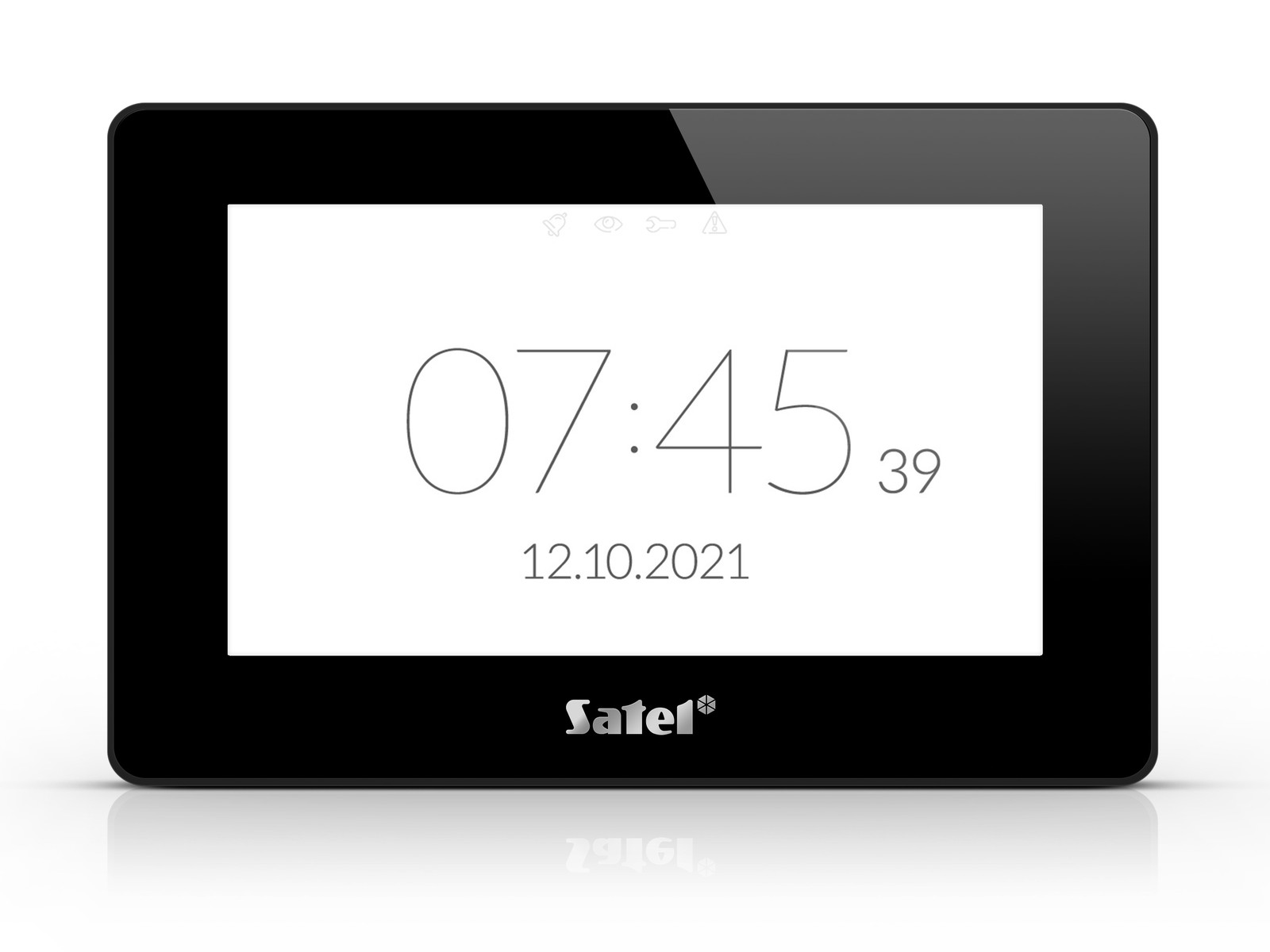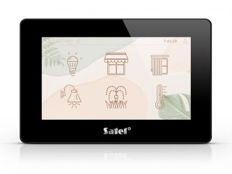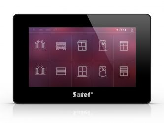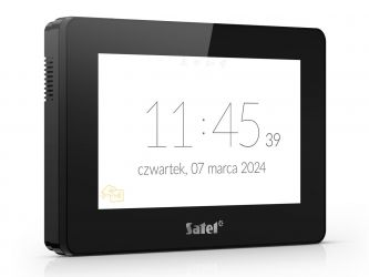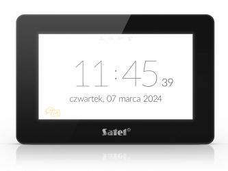 Dotyková klávesnice LCD 7'' s integrovanou čtečkou, pro systémy INTEGRA, VERSA, PERFECTA 64 M, čtečka MIFARE 13,56MHz (pouze INTEGRA), rozlišení 1024x600, 16,7 milionu barev, přes 20 motivů, víceúrovňové konfigurovatelné grafické rozhraní, až 24 uživatelských obrazovek, podpora widgetů a MACRO funkcí, spořič obrazovky: hodiny, data, stavy (zóny, dveře, východy), teploty (pouze INTEGRA a INTEGRA Plus), funkce fotorámečku, nastavení hlasitosti (gong, vstup./odchod. zpoždění, požár, poplach, obecné), režim zobrazení LCD klávesnice, slot pro paměťovou kartu microSD/SDHC, 2 zóny (EOL,2EOL, 3EOL), stupeň 3 (EN 50131), barva černá, odběr 350-450mA, rozměry: 196 x 129 x 22 mm.