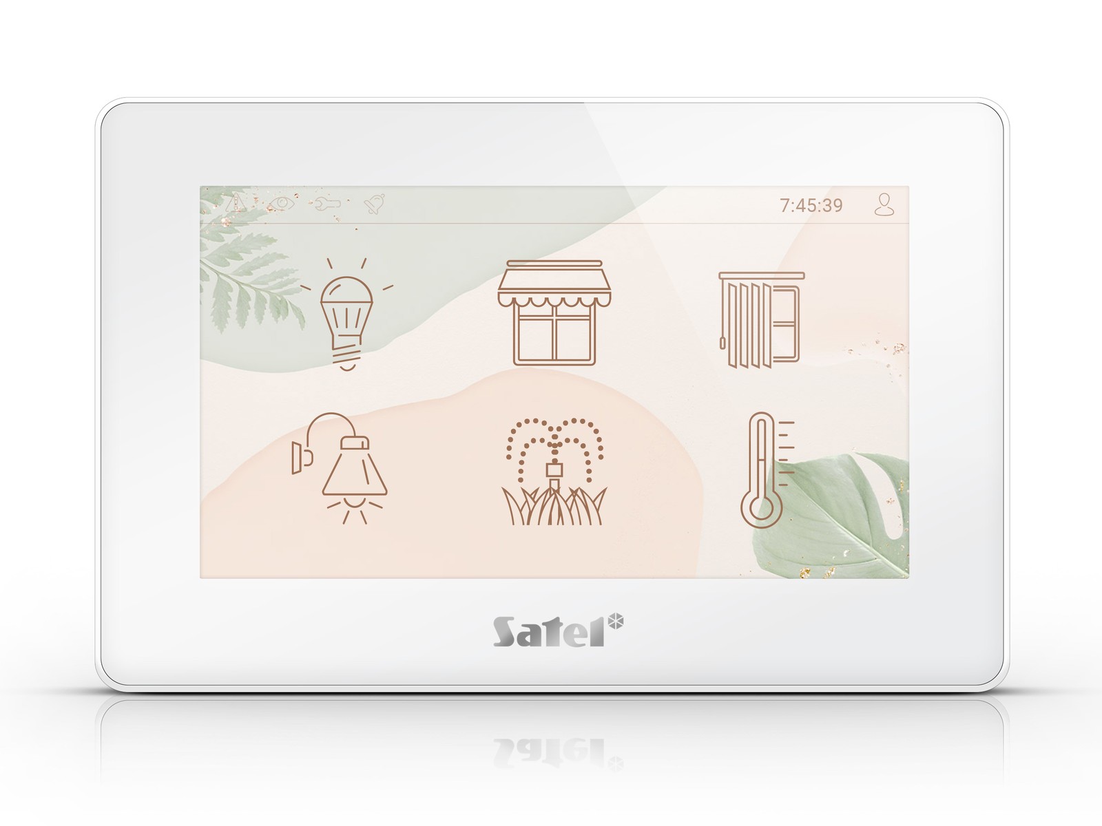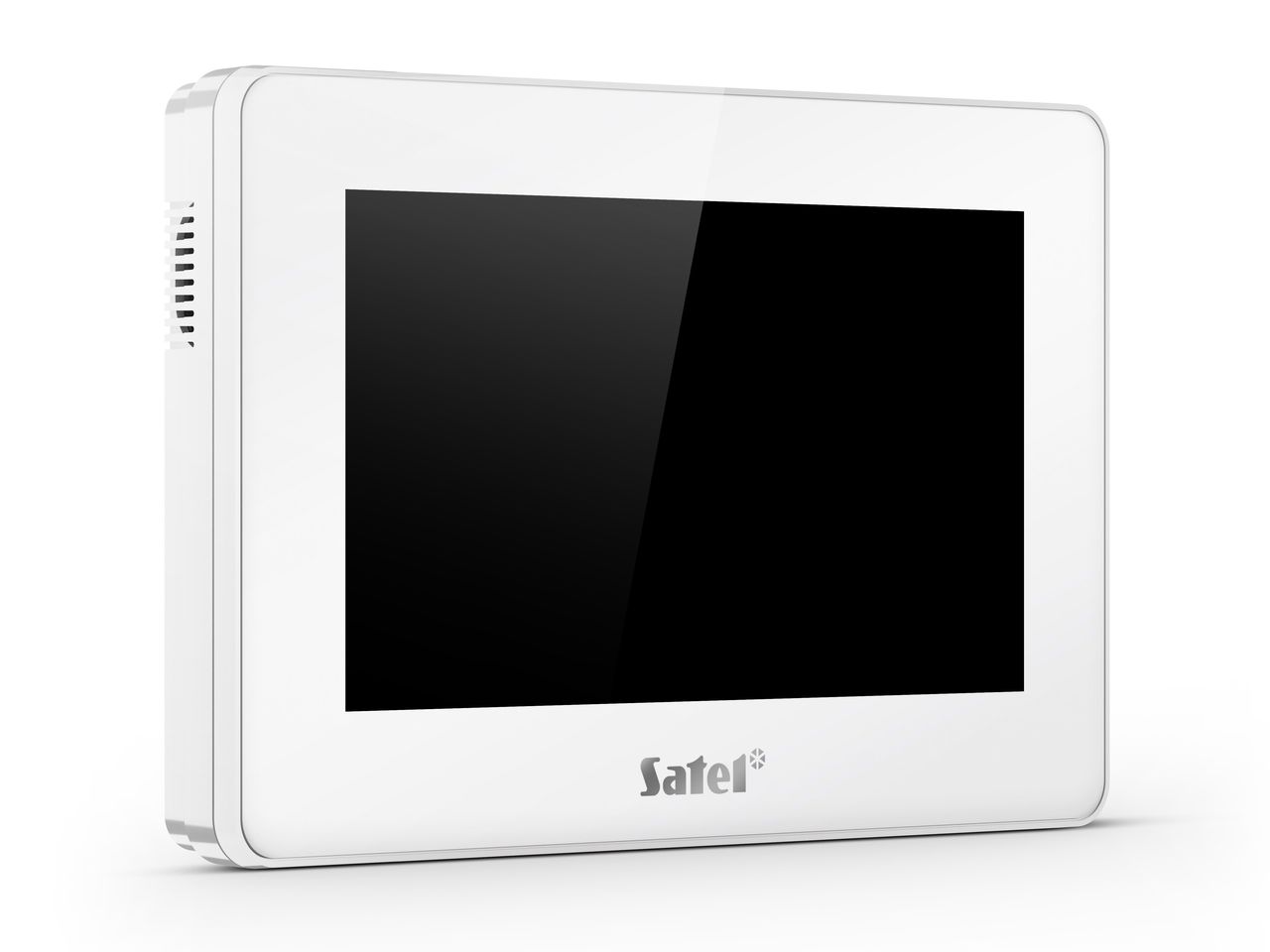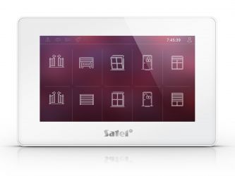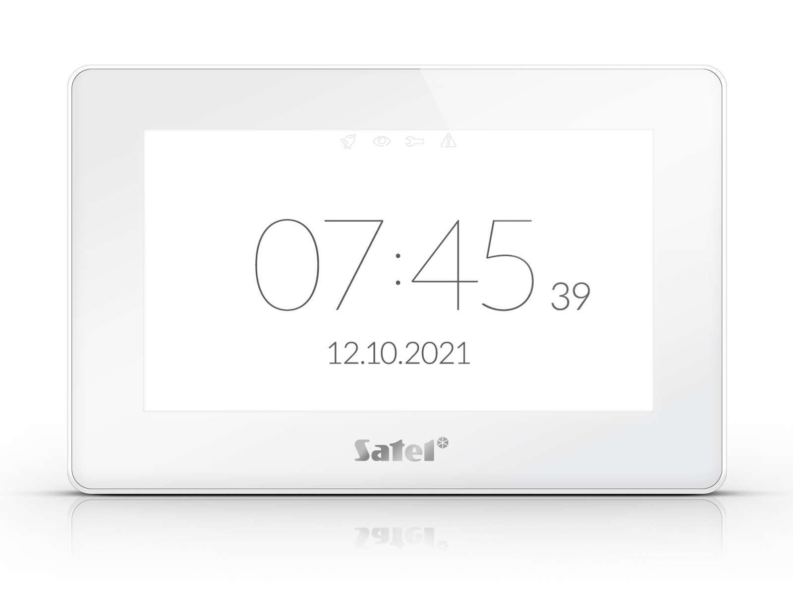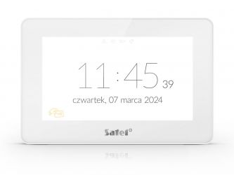 Dotyková klávesnice LCD 7'' s integrovanou čtečkou, pro systémy INTEGRA, VERSA, PERFECTA 64 M, čtečka MIFARE 13,56MHz (pouze INTEGRA), rozlišení 1024x600, 16,7 milionu barev, přes 20 motivů, víceúrovňové konfigurovatelné grafické rozhraní, až 24 uživatelských obrazovek, podpora widgetů a MACRO funkcí, spořič obrazovky: hodiny, data, stavy (zóny, dveře, východy), teploty (pouze INTEGRA a INTEGRA Plus), funkce fotorámečku, nastavení hlasitosti (gong, vstup./odchod. zpoždění, požár, poplach, obecné), režim zobrazení LCD klávesnice, slot pro paměťovou kartu microSD/SDHC, 2 zóny (EOL,2EOL, 3EOL), stupeň 3 (EN 50131), barva bílá, odběr 350-450mA, rozměry: 196 x 129 x 22 mm.