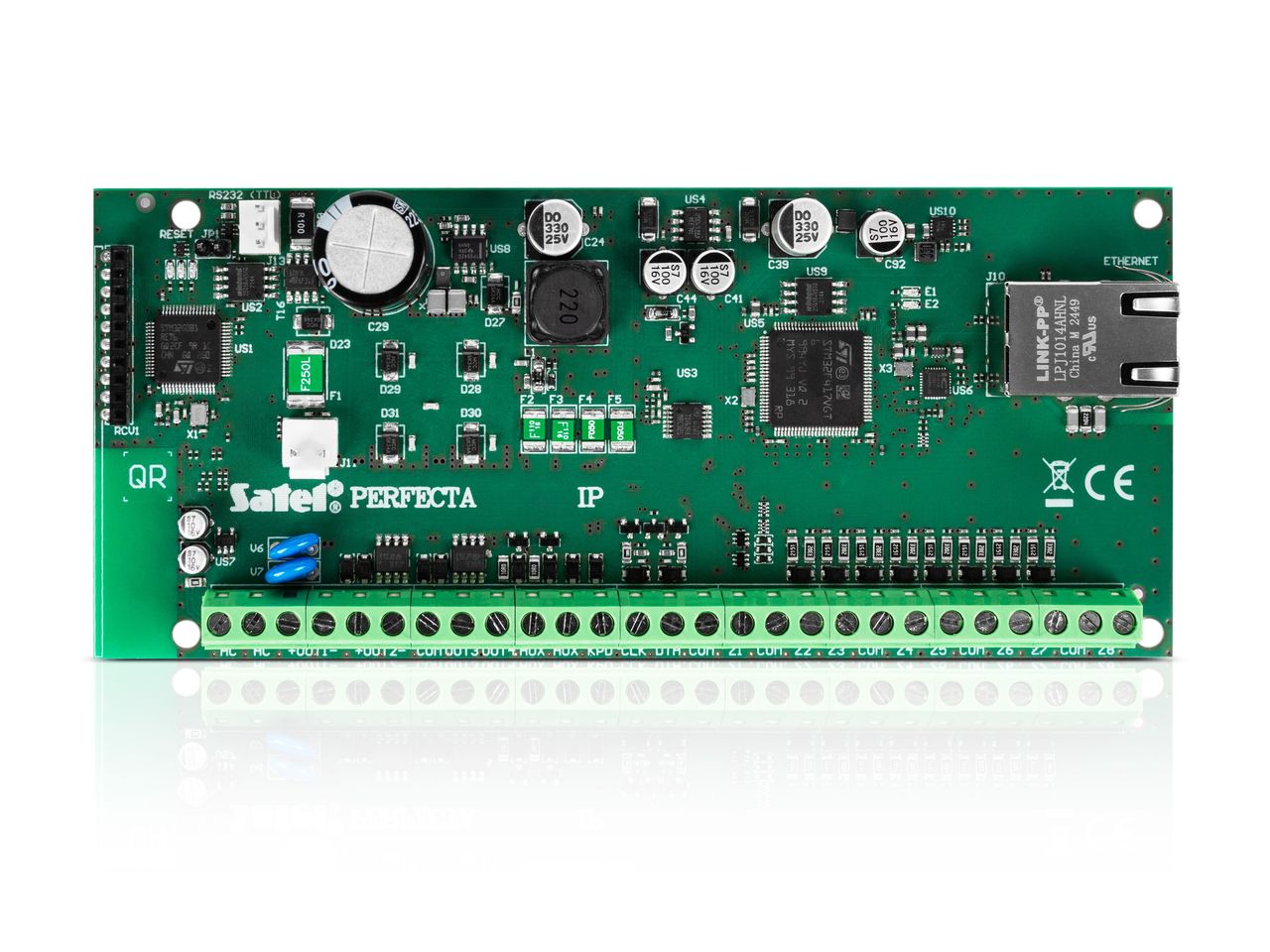 PERFECTA-IP 64 využívá vestavěný Ethernet modul pro připojení mobilní aplikace s podporou PUSH zpráv, pro vzdálenou konfiguraci systému pomocí programu PERFECTA Soft, nebo monitorování událostí (např. na monitorovací stanici bezpečnostní agentury).