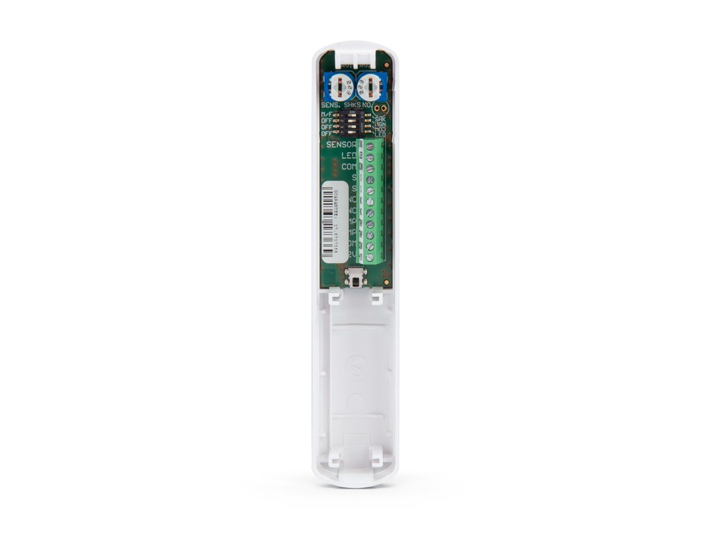 Detektor s více funkcemi: magnetický kontakt, detektor zaplavení (se sondou FPX-1), otřesový detektor (+mag. kontakt). Nastavení režimu DIP přepínačem, LED signalizace, vzdálená aktivace/deaktivace funkce, kontrola napájení, tamper ochrana proti otevření a stržení od podkladu. Obsahuje 2 mag. kontakty (povrchový a zápustný). Barva krytu bílá.