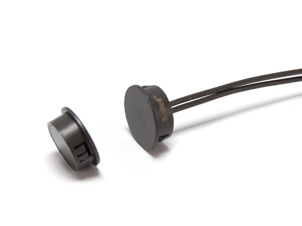 = KOD:109531 PKOD:20759 =Magnetický kontakt zápustný plochý, dva vodiče, kontakt NC, hermeticky uzavřený, tmavě hnědé provedení