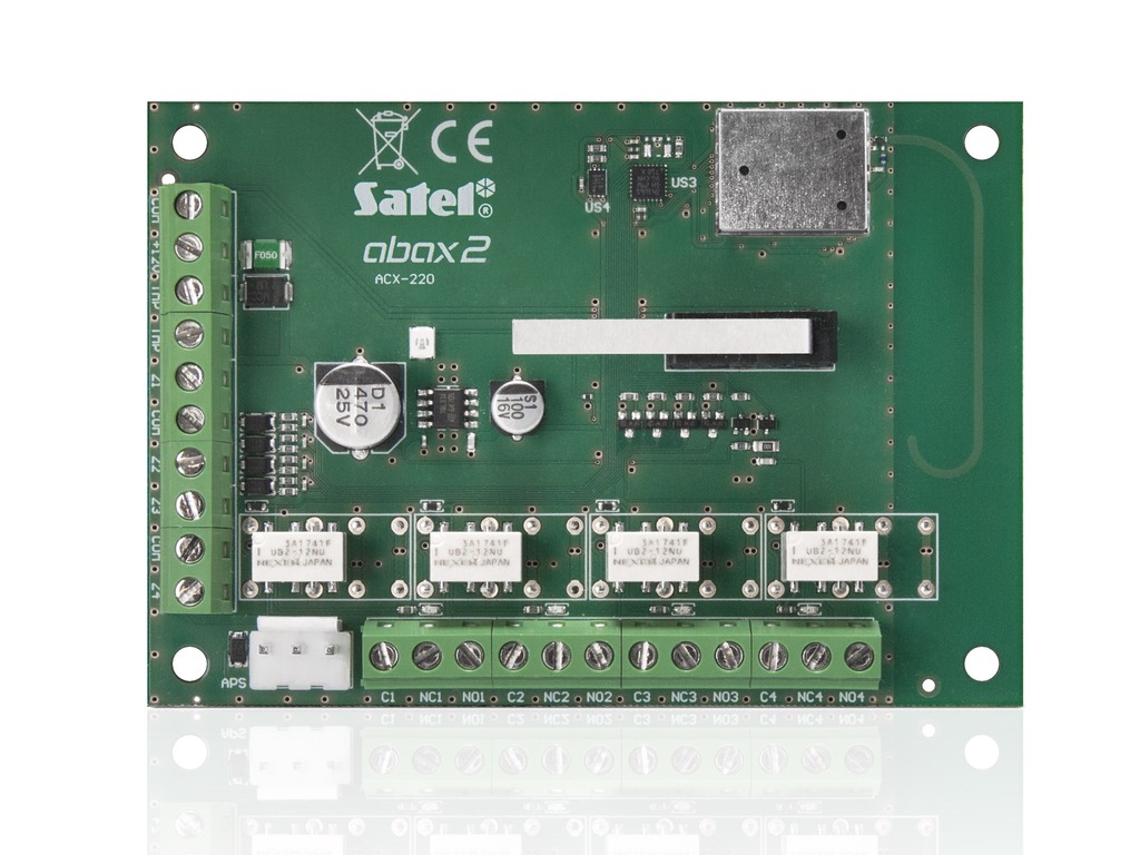 Modul ACX-220 umožňuje použít drátová zařízení (detektory, sirény, atd.) v bezdrátovém systému ABAX 2/ABAX. Modul má 4 programovatelné zóny s podporou drátových detektorů typu NO a NC a zakončení smyčky EOL, 2 EOL, dále má 4 programovatelné drátové reléové výstupy.
