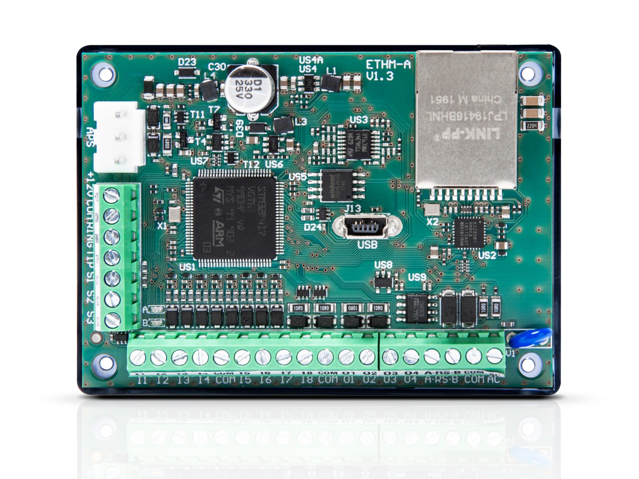 ETHM-A má 8 vstupů, které lze naprogramovat jako NO, NC nebo analogové pro práci se zařízeními vybavenými výstupy NO nebo NC, analogovými senzory nebo D/A převodníky. Navíc je vybaven 1-Wire digitální senzorovou sběrnicí, na kterou lze připojit maximálně 8 detektorů (např. teploty) s maximální délkou sběrnice 30 m. Tímto způsobem lze modul použít ke shromažďování a přenosu různých typů dat v rámci IoT, například aktuální teploty, úrovně vlhkosti a dalších. ETHM-A může také vysílat na monitorovací stanici události, které proběhly v zabezpečovacím systému (např. zastřežení, poplachy a další).