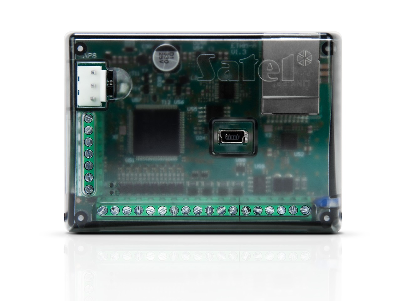 V zabezpečovacích systémech lze modul použít pro hlášení událostí na PCO, pokud je připojen k zabezpečovací ústředně pomocí telefonního komunikátoru. ETHM-A lze také připojit k ústředně pomocí vhodně nastavených výstupů ústředny připojených ke vstupům modulu.