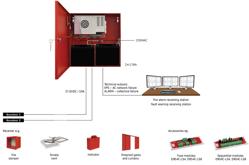 Napájecí zdroj EN54C 27,6V/10A/2×17Ah pro protipožární systémy