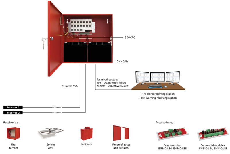 Napájecí zdroj EN54C 27,6V/5A/2×40Ah pro protipožární systémy