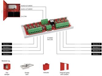 | Napájecí výstupy | 8 x 0.5A / Uaux = Uin |