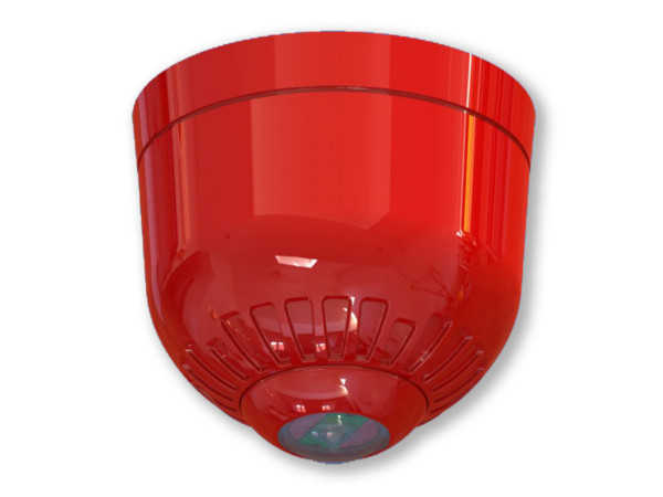 = KOD:208605 PKOD:12920 =Sonos Pulse maják na strop, nízká patice, červená barva, bílé světlo, 17-60V DC, 20/40mA (0,5/1Hz), IP21, -25°C až +70°C, splňuje EN54-23