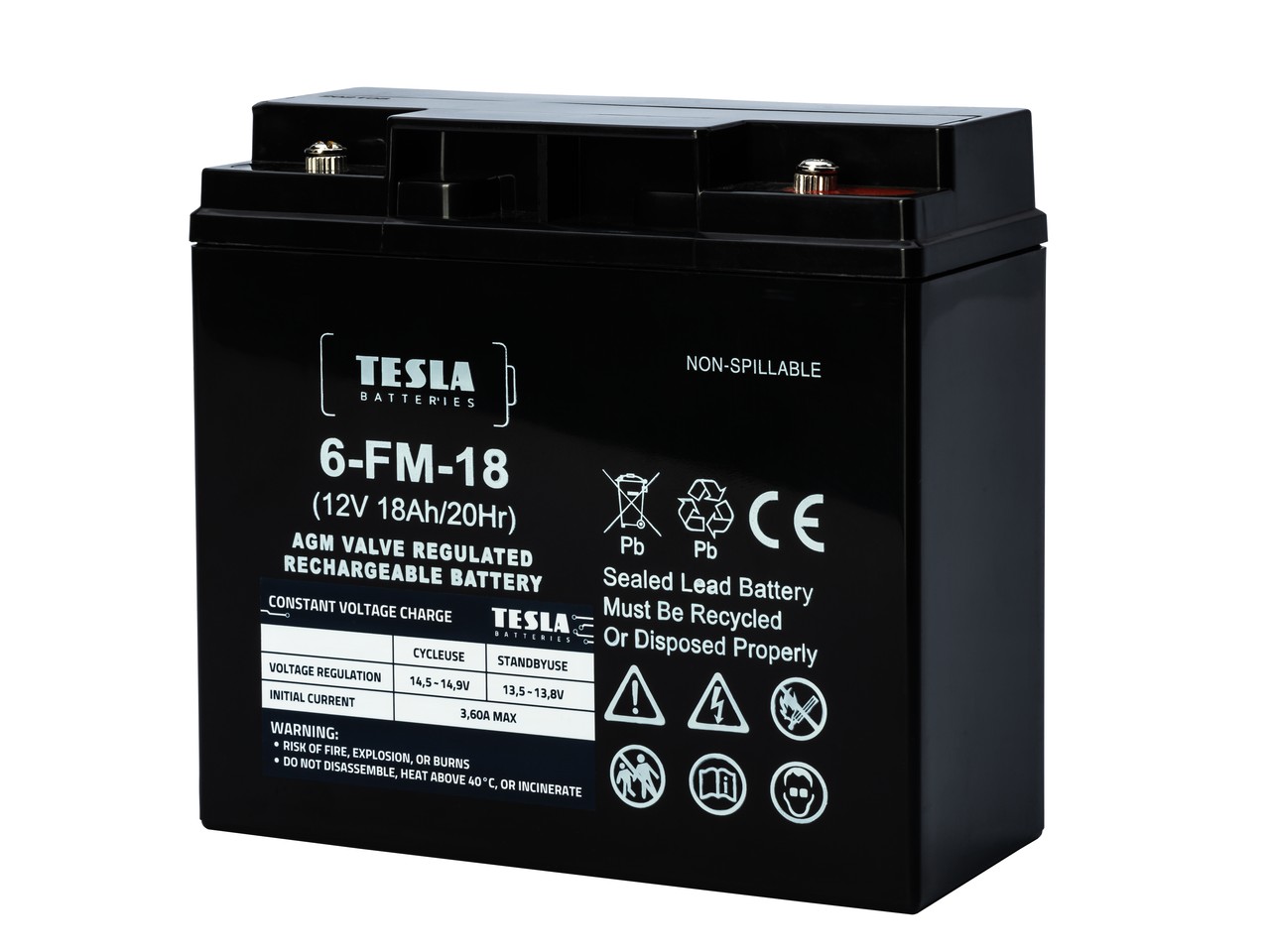 12V, 18Ah, záložní , bezúdržbový, VRLA, uzavřený, akumulátor. Technologie AGM. Vhodný pro EZS, Rozměry: 181 x 77 x 167 mm, hmotnost: 5,2kg, typ pólu: závit M5, max. odebíraný proud 255A (5s), pracovní teploty: -20°...60°, životnost až 5let.