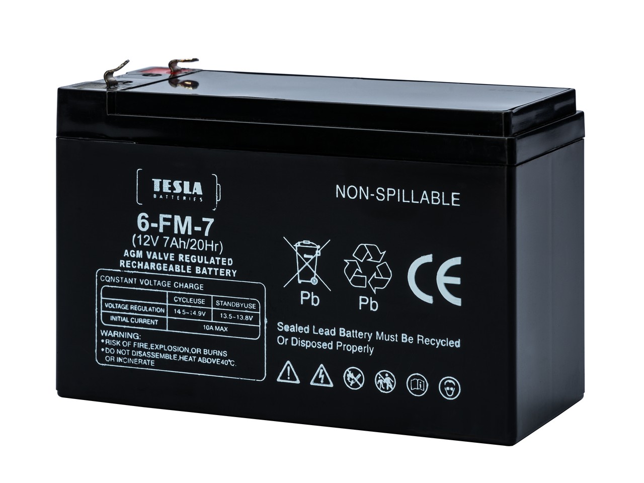 12V, 7Ah, záložní , bezúdržbový, VRLA, uzavřený, akumulátor. Technologie AGM. Vhodný pro EZS, Rozměry: 151 x 65 x 100 mm, hmotnost: 2,4kg, faston 4,8mm, max. odebíraný proud 108A (5s), pracovní teploty: -20°...60°, životnost až 5let.