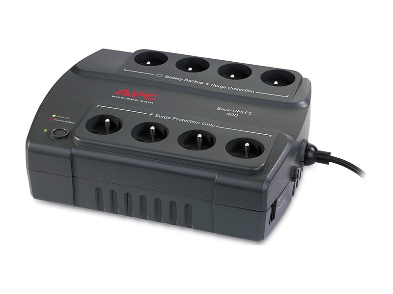 Záložní zdroj APC Back-UPS 400VA, 8 x česká zásuvka, rozměry: 89 x 224 x 311 mm, hmotnost: 6,93 kg, Výkon: 400 VA / 230 W (BE400-CP)