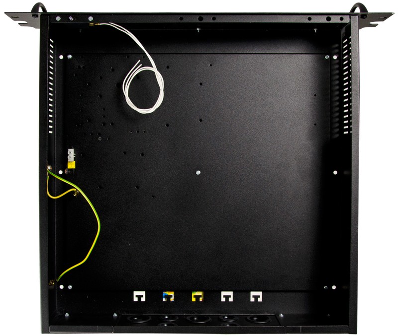 = KOD:110030 PKOD:14509 =Univerzální kryt 2U/400mm pro 19" datové rozvaděče, vnitřní rozměry: Š=390, V=70, H=395, vč. montážní desky, prostor pro 7Ah akumulátor, tamper ochrana, nostnost až 30kg s kolejnicemi ARAS (bez do 5kg)