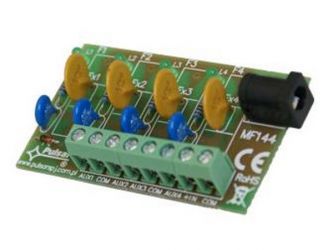 Pojistkový blok se používá pro rozvod energie v nízkonapěťových poplašných systémech. Modul má 2 napájecí jednotky: svorkovnici IN a socket DC 5,5/2,1. Pracovní napětí pojistkového modulu je 10 V÷ 30 V DC. Modul má 4 nezávislé výstupy (AUX1 ÷ AUX4). Modul má ochranu výstupů pře přetížením a zkratem pomocí polymerových pojistek PTC. Chyba pojistky nebo aktivace pojistky je signalizována vypnutím příslušné diody u výstupu (např. LED L1 u AUX1). kromě toho je každý výstup chráněn varistorem pro kontrolu zatížení a přepětí ze sítě.