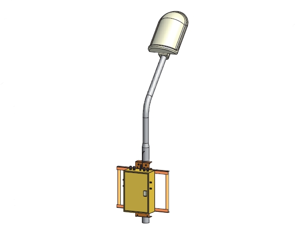 Zařízení má tvar kovové, zamykatelné skříně. Přívod napájení je uskutečněn pomocí kabelu, který je součástí dodávky a který se tělem lampy přivede do dolní části, kde se připojí na svorkovnici. Zařízení je upevněno k ocelové konstrukci, která slouží k upevnění na sloup, ale zároveň konstrukce poskytuje pozice pro upevnění kamer. Kamery je možné na konstrukci pohodlně instalovat a připojit před zdvižením na sloup. Instalaci celého kompletu usnadňuje montážní oko, v horní části konstrukce.