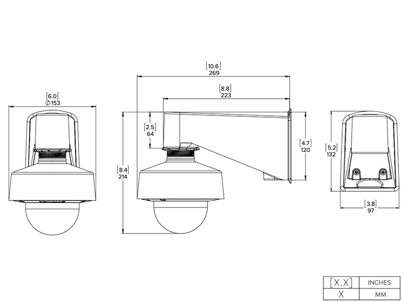Stěnový držák určený pro dome H4SL a H5SL, H4PTZ, H4F a H5A-FE fisheye kamery, H5DH duální kamery, (vyžaduje adaptér NPTA1)