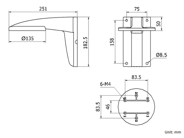 Stěnový držák pro miniDome kamery řady DS-2CC51xx-VF.