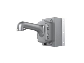 Držák s boxem na roh budovy pro PTZ kamery Hikvision, materiál: hliník, barva: platinová šeď, pro průměr sloupu: 67 - 127 mm, Kompatibilní modely: DS-2DFxxyy (venkovní modely)