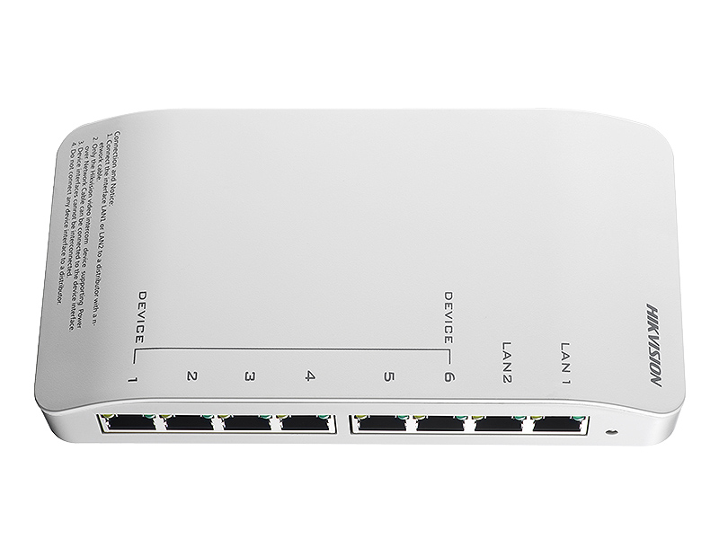 Video/audio distributor s 8x RJ-45, (6x 24 VDC) pro videotelefony Hikvision. Zdroj - 24 VDC - NENÍ součástí balení.