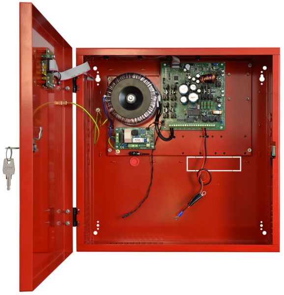 V případě výpadku síťového napájení, přepne PSU na napájení z baterií, pro zajištění nepřetržitého provozu. PSU je umístěn v kovové skříni (RAL 3001 - červená) s prostorem pro dvě baterie 40 Ah/12 V. PSU pracuje s bezúdržbovými bateriemi vyráběnými AGM technologií nebo gelovou technologií.
