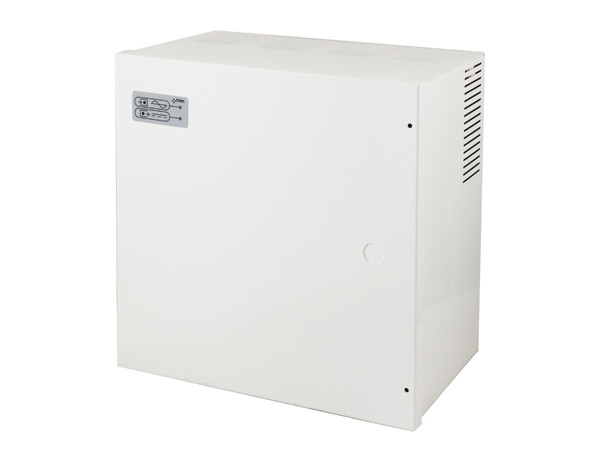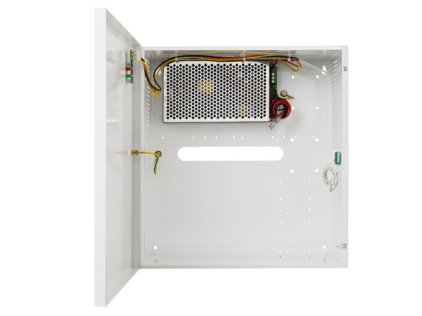 V případě přerušení dodávky síťového proudu dojde k okamžitému přepnutí na napájení z akumulátorů. Zdroj je konstruován na bázi modulu impulsního napájecího zdroje s vysokou energetickou účinností. Zdroj se nachází v kovové skříňce (barva RAL 9003) s místem na akumulátor 40Ah/12V. Skříňka je vybavena mikropřepínačem signalizujícím otevření dvířek (zepředu).