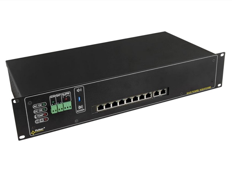 = KOD:110169 PKOD:22188 =10-portový switch se zálohovaným napájecím zdrojem pro 8 IP kamer a NVR rekordér, montáž do RACK 19", 10 portů (8xPoE + 2xUPLINK) Napájení a záloha: 230VAC, 1,0A / 2x7Ah / 2x17Ah / 2x28Ah 4A/12VDC Rozměry: 19? x 1U x 307 PoE: 8 portů 1Gb/s – IEEE 802.3af/at, 52VDC 30W/port (PoE+)/ max.120W*, UPLINK: 2 porty 1Gb/s