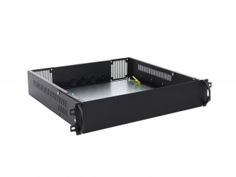 = KOD:110186 PKOD:24778 =Univerzální kryt 2U/400mm pro 19"" datové rozvaděče, rozměry: 415 x 87 x 400, vč. montážní desky, prostor pro 7Ah nebo 17Ah akumulátor, tamper ochrana, nostnost až 30kg s kolejnicemi ARAS (bez do 5kg), plech DC01, 1mm, RAL9005 (černá)