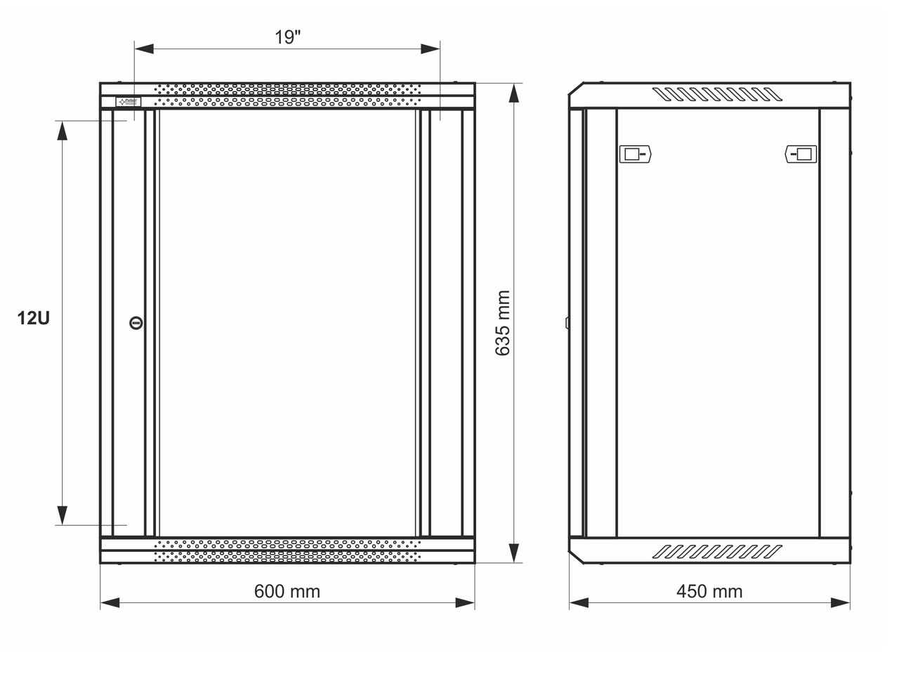 = KOD:110566 PKOD:25146 =12U / 19" datový rozvaděč, nástěnný, připravený k sestavení, šedý, 600x450