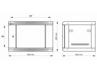 = KOD:110555 PKOD:25159 =4U / 19" datový rozvaděč, nástěnný, plně sestavený, šedý, 540 x 400