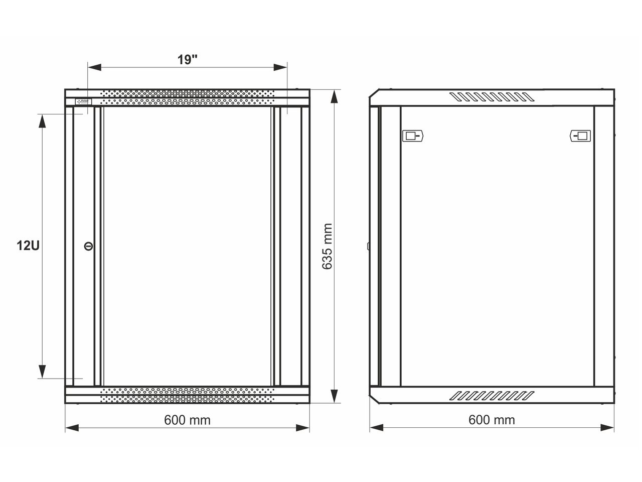 = KOD:110567 PKOD:25168 =12U / 19" datový rozvaděč, nástěnný, připravený k sestavení, šedý, 600 x 600