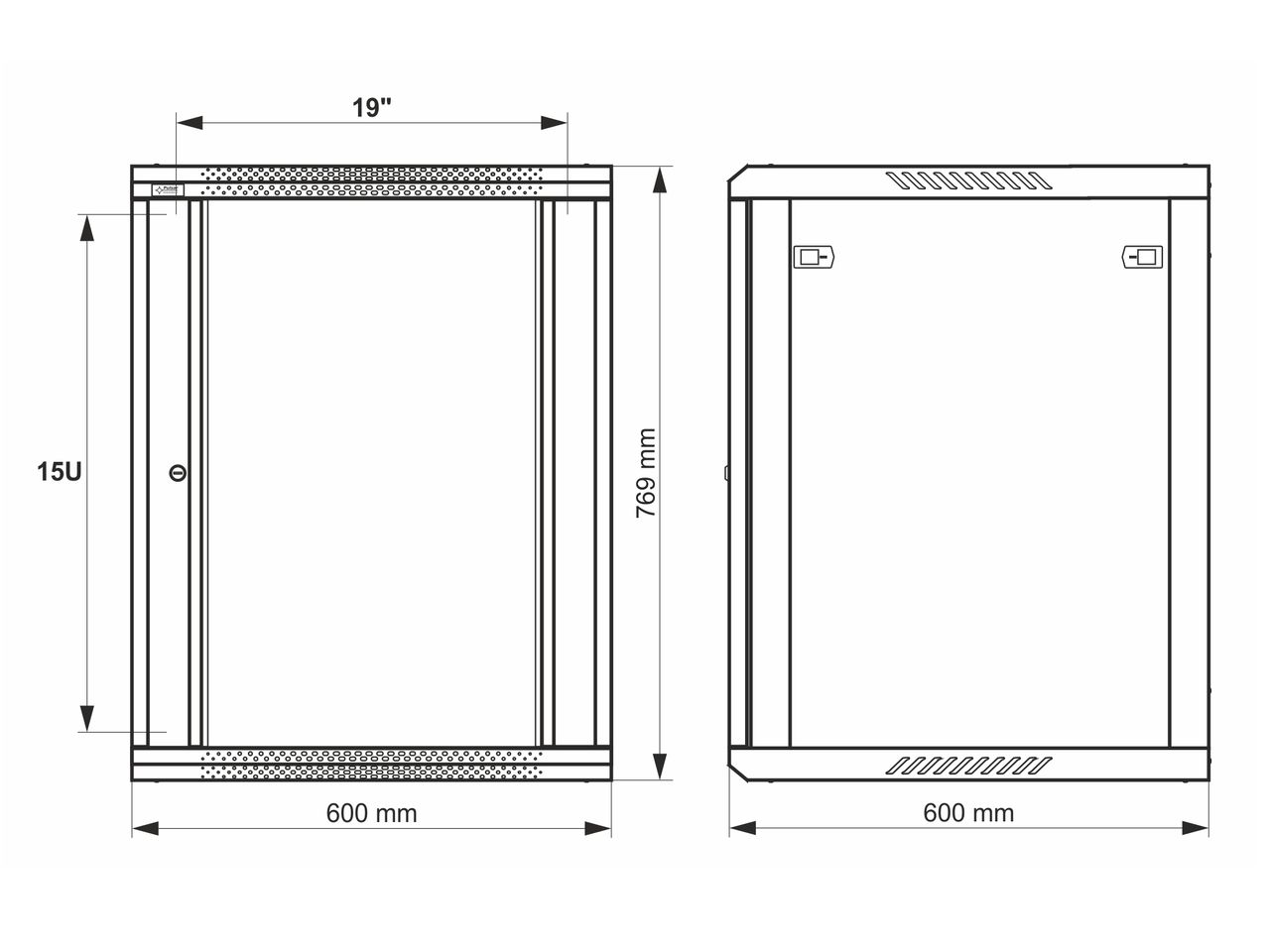 = KOD:110570 PKOD:25171 =15U / 19" datový rozvaděč, nástěnný, připravený k sestavení, šedý, 600 x 600