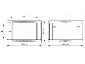 = KOD:110556 PKOD:25160 =4U / 19" datový rozvaděč, nástěnný, připravený k sestavení, šedý, 600 x 600