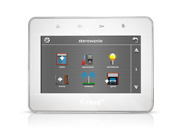 Dotykový panel INT-TSG je ideálním řešením pro náročné uživatele zabezpečovacích systémů INTEGRA, kteří upřednostňují ovládání přes dotykový displej. Malé rozměry a atraktivní vzhled dotykového panelu INT-TSG umožňuje využití v různých prostorech. Díky malým rozměrům je dotyková klávesnice vhodná pro montáž téměř kdekoliv. Barevný displej s úhlopříčkou 4,3" nabízí úplně nové uživatelské rozhraní vhodné pro každodenní ovládání ústředen INTEGRA. Dotykový displej je vyrobený s využitím technologie kapacitních displejů, které umožňují pohodlné ovládání pomocí dotyku. Velké, dobře čitelné ikony umožňují využívat všechny funkce nabízené systémem. Kromě základních příkazů sloužících pro zastřežení a odstřežení, umožňuje dotykový panel INT-TSG pomocí jediného dotyku spustit i složitou sekvenci různých příkazů díky MAKRO funkcím. Tento způsob je ideálním řešením v případě využívání funkcí inteligentního domu dostupných v ústřednách INTEGRA.