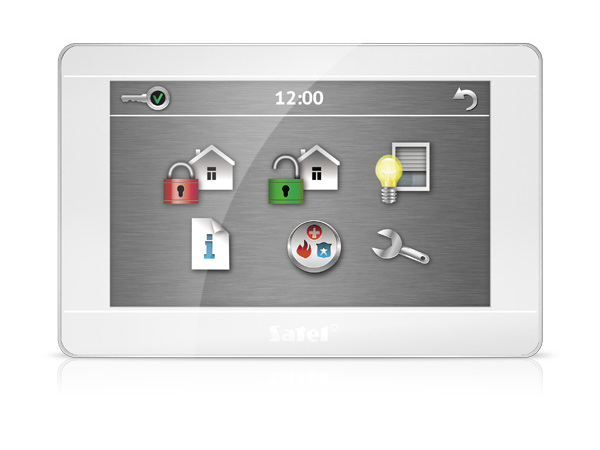 Dotyková klávesnice LCD 7'' pro systémy INTEGRA a VERSA, 2 zóny, tamper, MAKRO funkce. Velké přehledné ikony, rychlá odezva na dotyk, akustická signalizace, možnost aktivace poplachů: požár, pomoc, tíseň. Barevné provedení: bílá záda, stříbrný rámeček, bílý předek.