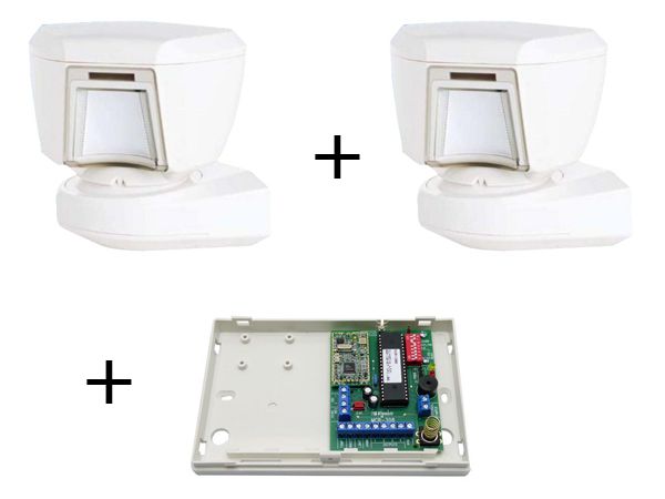 = KOD:108260 =2x bezdrátový, venkovní, zrcadlový detektor pohybu TOWER-20AM MCW 868MHz, s technologií Octa Quad a antimaskingem v sadě se čtyřkanálovým (4-28) přjímačem MCR-308 868MHz.