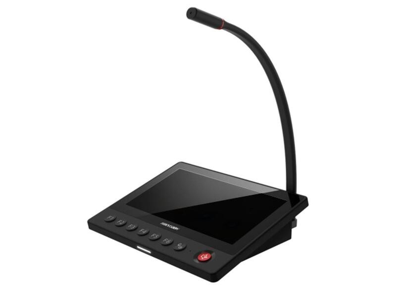 = KOD:315648 PKOD:25951 KODVYROBCE:347000026 =Síťový oznamovací mikrofon s 7" barevným IPS dotykovým displejem (1024 × 600), podpora real-time vysílání, mluvení nebo přehrávání souborů z mediální knihovny na určených zónách nebo terminálech, možnost výběru jednoho či více terminálů, definice až 6 zkratek (F1 až F6) pro vysílání, 1x husí krk mikrofonní audio vstup, 1x 3,5 mm 4-segmentový audio vstup, 1x lokální reproduktorový audio výstup, 1x 3,5 mm audio výstup, podpora přihlášení pomocí účtu a hesla, možnost nastavení parametrů, správy účtů, údržby systému a dalších operací, podpora dlouhého stisku (3 sekundy) pro nouzové volání na určené nebo všechny terminály, podpora protokolů ISAPI, ISUP, komprese G.711U (64 Kbps), potlačení ozvěny, podpora klienta HikCentral Professional, 1x síťové rozhraní, podpora TF karty pro lokální úložiště, fyzická tlačítka a tlačítka na obrazovce, napájení 12 VDC, max. 10 W, provozní teplota -10 °C až +50 °C, provozní vlhkost 10 % až 90 %