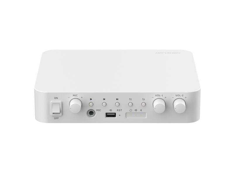 = KOD:315646 PKOD:26020 KODVYROBCE:347000001 =Síťový zesilovač s výkonem 80 W, 2 zóny, podpora reálných a plánovaných úloh, obnova přehrávání, správa audio knihovny, podpora alarmového vstupu, plánování střežení a audio propojení, podpora TTS syntézy řeči a textového vysílání s možností výběru standardního mužského a ženského hlasu, podpora více typů audio vstupů: Bluetooth 5.0 (dosah 10 m), USB flash disk (FAT32, max. 128 GB), mikrofon (-20 dBV, 4 k , nevyvážený, 6,35 mm jack), RCA (0 dBV, 5 k , nevyvážený), nezávislé ovládání hlasitosti mikrofonu a dvou zón, podpora dvoukanálového mixovaného audio výstupu, podpora protokolů IPv4, HTTP/HTTPS, SSL/TLS, DNS, NTP, TCP/UDP, IGMP, ICMP, DHCP, ARP, SSH, ISAPI, ISUP, RTP, klient HikCentral Professional, vestavěná 4GB EMMC paměť (1 GB pro audio soubory), 1x RJ-45 10/100M adaptivní Ethernet port, 1x alarmový vstup, 1x alarmový výstup, konstantní napěťový výstup × 2, 100 V COM, RCA výstup 1-2: 0 dBV, 100 , nevyvážený, RCA pin jack, podpora kaskádování až 3 zesilovačů