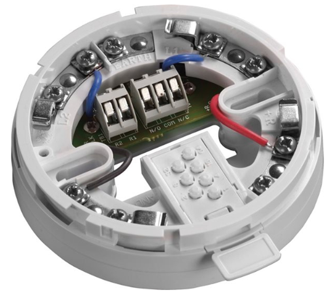 Adresná reléová patice s izolátorem XP95A, obsahuje nízkoodběrové relé, které umožňuje ovládání prvků v chráněném objektu jako je např.: automatické uzavření dveří.