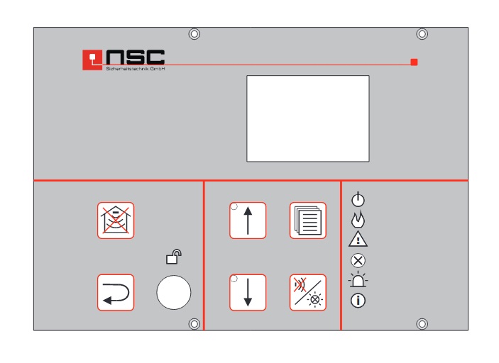 Dále lze z tabla utišit sirény a provézt zpětné nastavní ústředny. Tato dvě tlačítka jsou blokována klíčkem.
