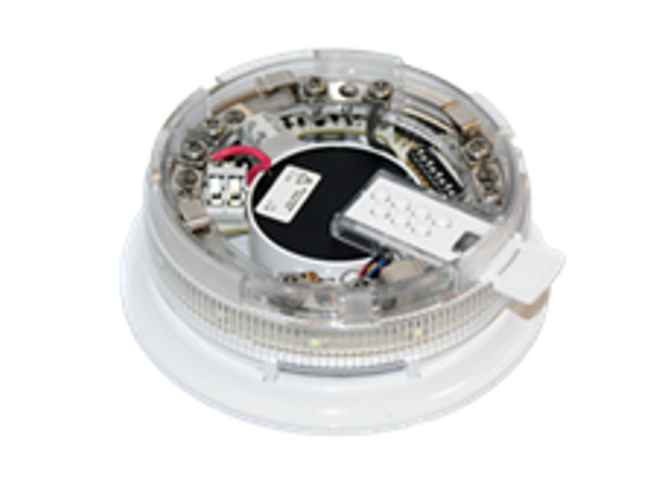 VAD patice s integrovaným majákem, sirénou s izolátorem 45681-705APO řady XP95 odpovídající EN 54-23 s signalizační frekvencí 0,5 Hz a výběrem ze dvou stupňů hlasitosti: