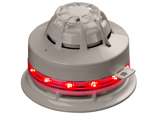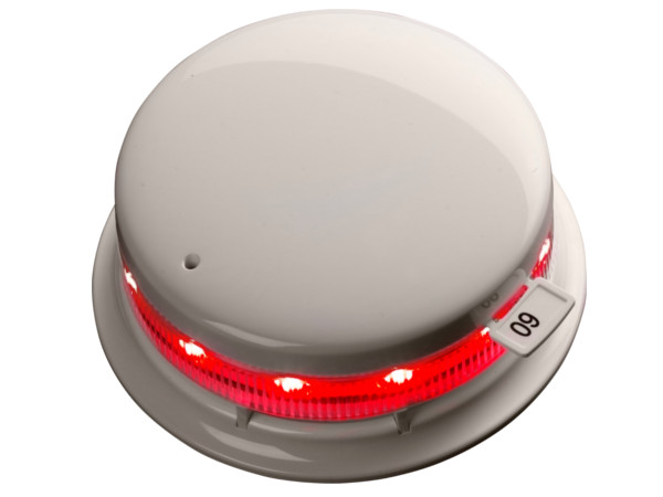 Adresná patice s integrovaným majákem a izolátorem 45681-709APO řady XP95, odpovídající EN 54-23 s signalizační frekvencí 0,5 Hz.