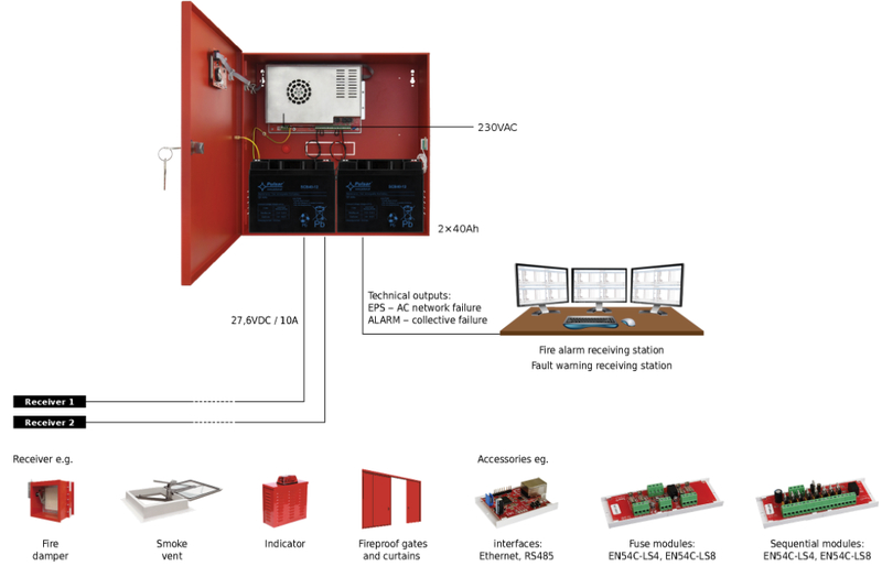 | Shoda s normami | EN54-4, EN12101-10 |