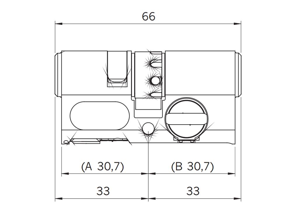 Mechatronická bezpečnostní cylindrická vložka, 2stranná, jednostranně elektronická na straně A, pro použití v interiéru