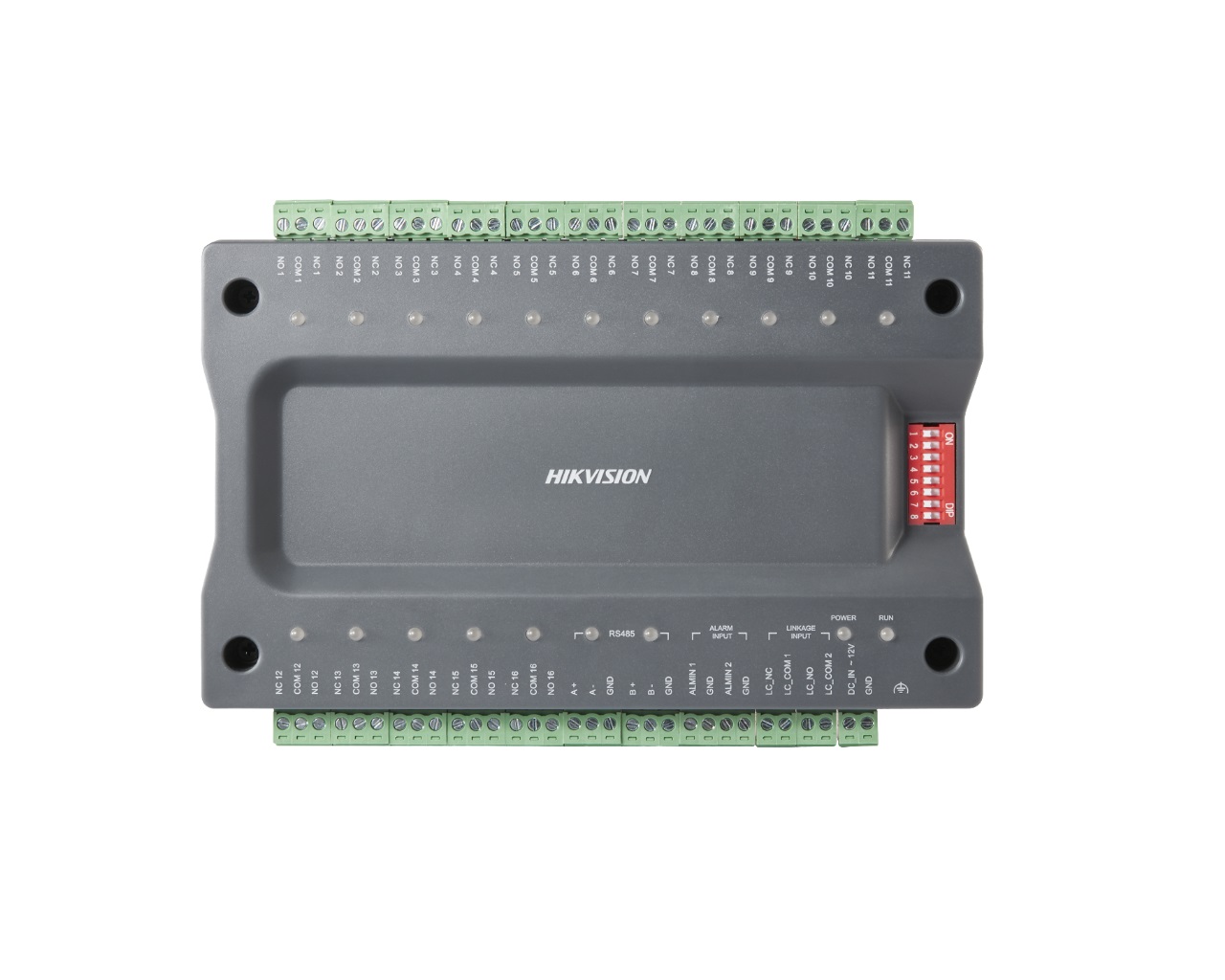 Výtahový kontrolér - 16x relé pro ovládání tlačítek pater, 2x RS-485 s jednotkou Master, DIP switch pro nastavení adresy a typu relé, možno připojit až 8 jednotek k Master jednotce, 2x poplachový vstup, bzučák