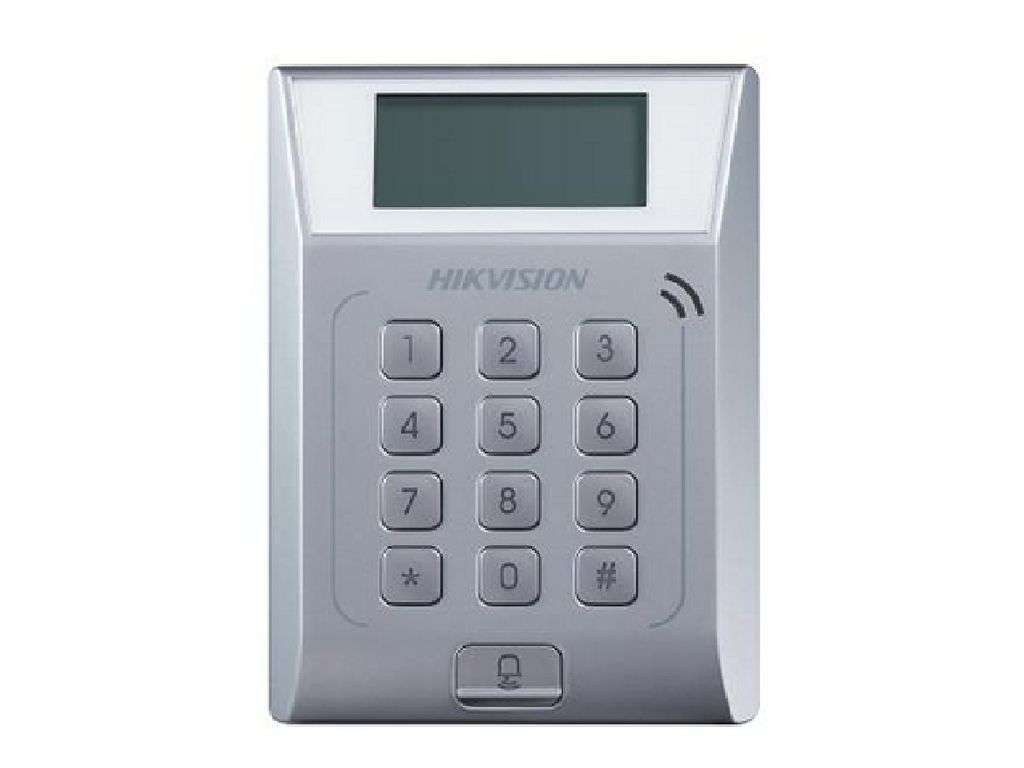 LCD Display Screen Standalone Přístupový terminál, Built-in čtečka Mifare, Max. 3,000 cards No., and Max. 10,000 access control events records, TCP/IP, 12 Keys keyboard and doorbell, DC 12V/1A