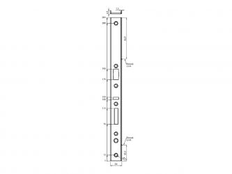 Čelo zámku určené pro samozamykací zámky ERBI s roztečí 92 mm (řady 9235 a 9245) ve tvaru U, zámek mimo osu UA