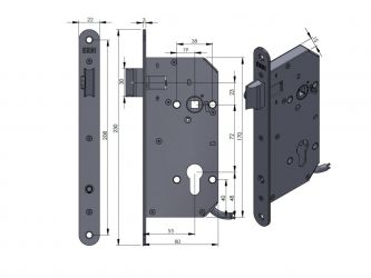 | Rozměry čela zámku | 230 x 22 x 3 mm, R11 |