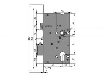 | Rozměry čela zámku | 235 x 20 x 3 mm, R10 |