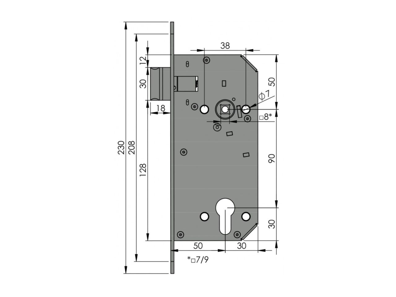 | Rozměry čela zámku | 230 x 22 x 3 mm |